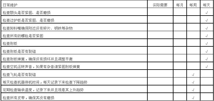 (6)破碎機使用一定時間后,應重新緊固所有緊固件。